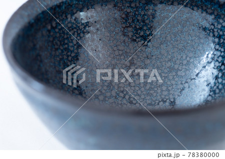 油滴天目茶碗の斑紋模様、陶器【白背景】