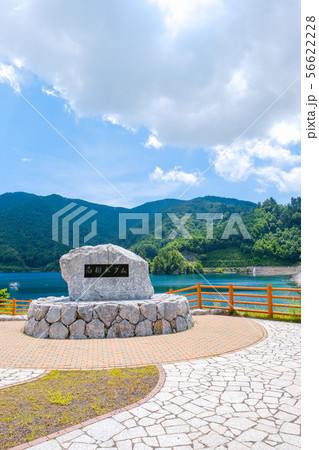 【南相木村 奥三川湖畔 天空の石広場 発電用ロックフィルダム「南相木ダム」とダム名碑】