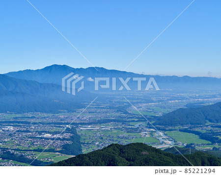 7月半ば(夏)・午前中 陣馬形山の山頂展望台からの景色(伊那市方面) 長野県上伊那郡中川村