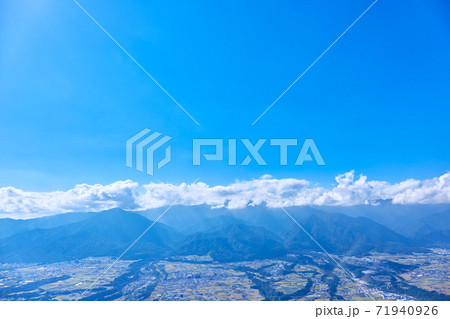 陣馬形山の展望台 南アルプス方面を望む 長野県上伊那郡中川村