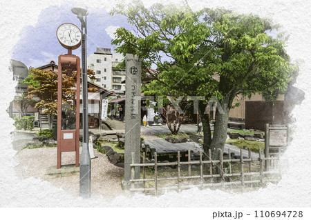 水彩画風 山代温泉 はづちを楽堂 石川県加賀市