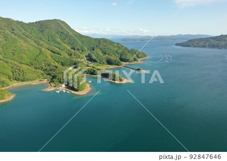 熊本県天草市の宮野河内湾の港湾風景の空撮
