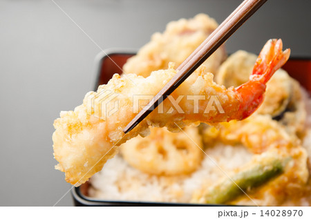 普通の天丼 Japanese foods of tempura and the rice