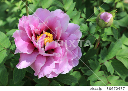 百花の王とも言われる落葉小低木の桃色の牡丹