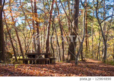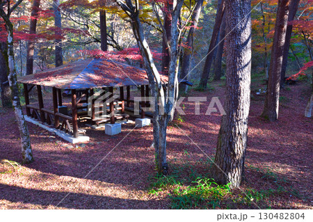 秋の山梨県甲府市 昇仙峡の天鼓林(てんこりん)と東屋
