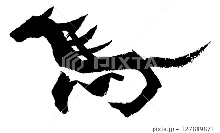 筆で書いた手書きの馬の文字のイラスト 年賀状や和風デザインに使える素材