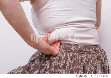 【お腹の肉を摘む主婦】