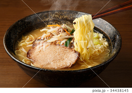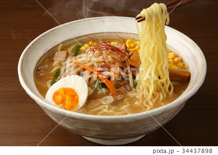 注意)湯気はレタッチ合成です。味噌らーめん、みそラーメン、味噌ラーメン。モヤシ・にら・人参野菜炒め。