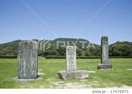古代日本の大宰府政庁跡の石碑(福岡県太宰府市)