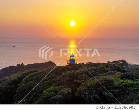 夜明けの太東埼灯台と太東岬(千葉県いすみ市)