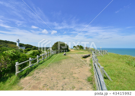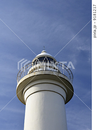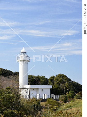 青空の下にたたずむの白い灯台 太東埼灯台(千葉県いすみ市)の写真素材