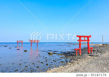 潮引き始め時の大魚神社の海中鳥居 佐賀県太良町