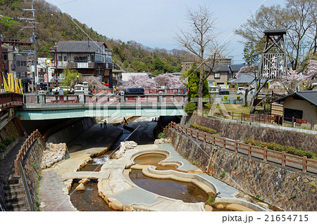 有馬温泉街(神戸市北区)太閤橋近辺に咲く桜並木