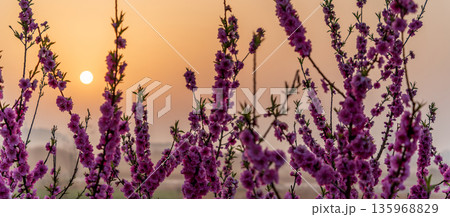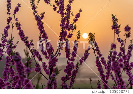 「埼玉県」春霞に包まれた早朝の見沼田んぼの風景