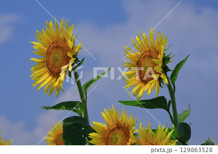 青空と元気なヒマワリ