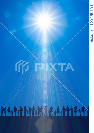 青空と太陽に人々