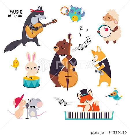 Cute Animal Characters Playing Musical Instruments Performing Concert Vector Set
