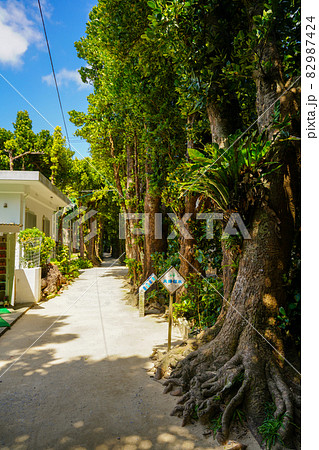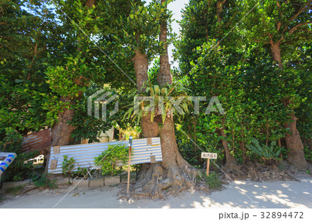 沖縄県国頭郡本部町 備瀬のフクギ並木と夫婦福木