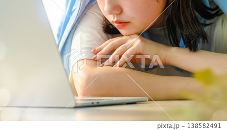 憂鬱な朝 気分が乗らない若い女性のイメージ