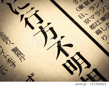 「行方不明」と書かれたニュースの見出し