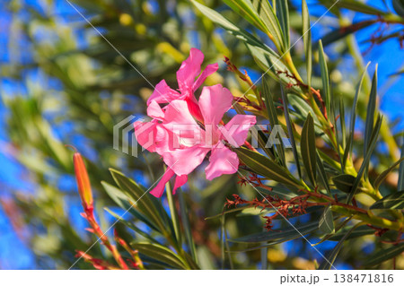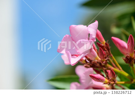 Pink flowers of poisonous oleander plant in Cyprus on beautiful background