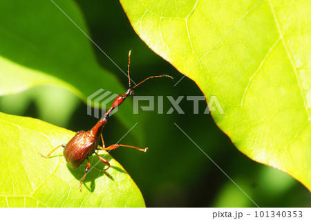 食事中のヒゲナガオトシブミ(オス)