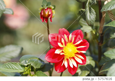 ダリア 奈奈 ナナ (コラレット)と ホウジャク(蛾)