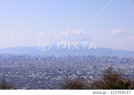 奈良と大阪の府県境大阪府八尾市の十三峠からの眺望 北摂の山々と北大阪のビル群