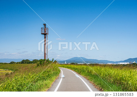 木津川堤防上の道 京奈和自転車道 京都府八幡市