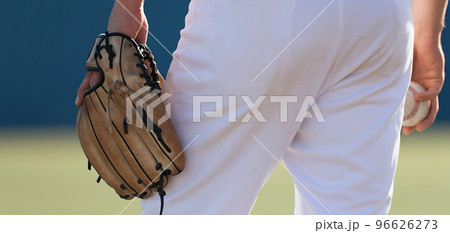 Baseball pitcher ready to pitch in baseball game, college softball player