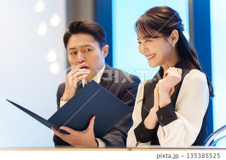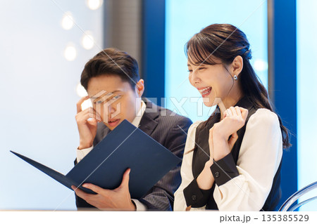 喜んでお金を手にする2人