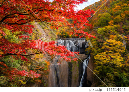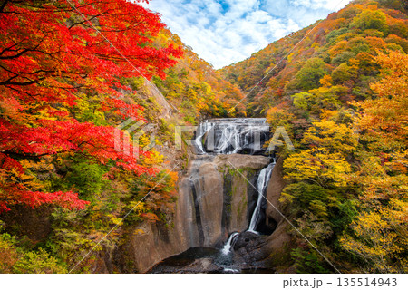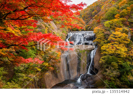 茨城県 日本三名瀑 袋田の滝 秋の紅葉と四段の滝の風景