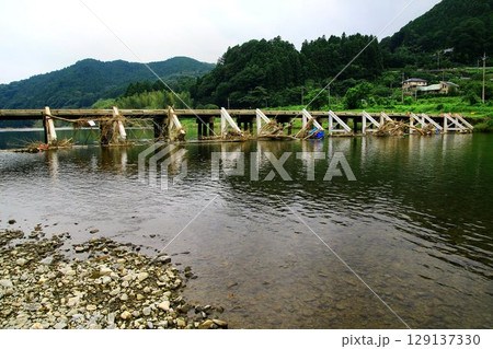 清流『久慈川』を渡る低い欄干が美しい木製橋… 【平山橋】