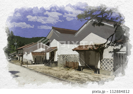 水彩画風 雲南 吉田町の町並み 田部家土蔵群 島根県雲南市