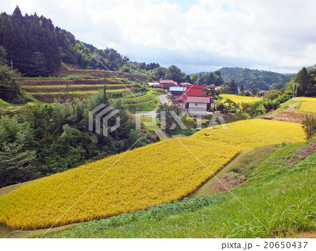 水彩画風 雲南 菅谷たたら山内 新嘗祭献穀斎田 島根県雲南市