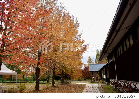 晩秋の高原 紅葉風景(葡萄園)