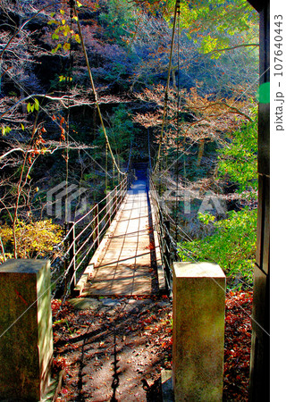 東京奥多摩の秋 紅葉の氷川渓谷 氷川大橋