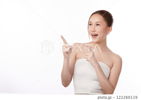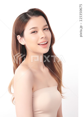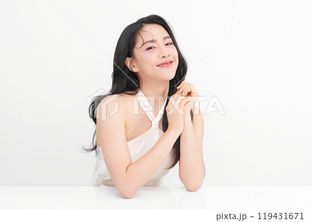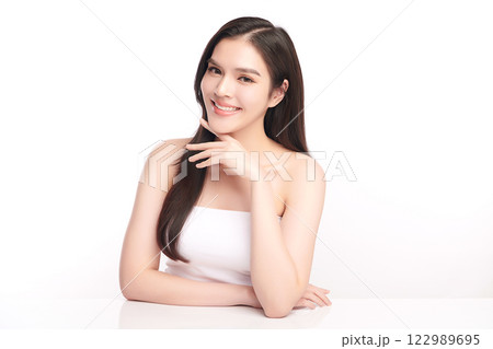 Beautiful young asian woman with clean fresh skin on white background, Face care, Facial treatment, Cosmetology, beauty and spa, Asian women portrait.