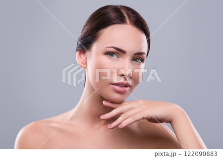 Beautiful young woman with clean fresh skin on white background, Face care, Facial treatment, Cosmetology, beauty and spa, women portrait.