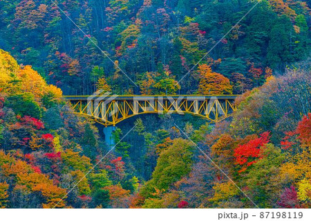 埼玉県秩父市浦山 浦山ダムの秩父さくら湖の紅葉と大久保橋