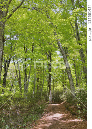 長野県 奥裾花自然園から今池湿原に向かう道沿いにある奥裾花社付近 2021年4月30日