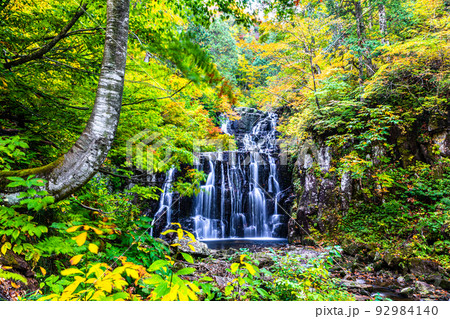 秋の装いの安ノ滝 中ノ又渓谷 秋田県北秋田市
