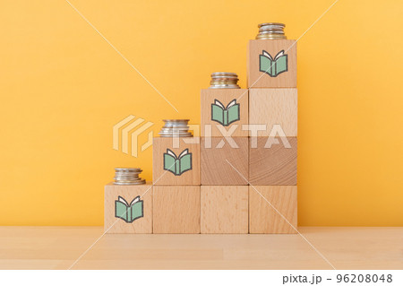 本マークの積み木とコイン