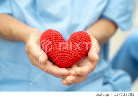 Asian doctor give red heart to elderly woman in her hand, heart Attack.
