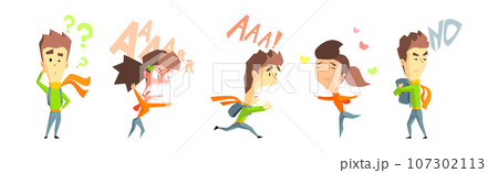 Funny Comic Man and Woman Character with Different Face Expression Vector Set