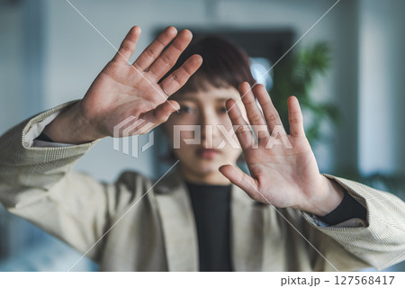 思案顔の若い女性