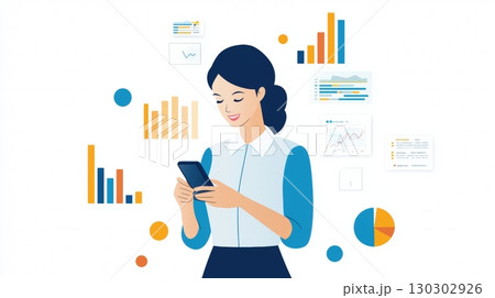 Analyzing business data young businesswoman reviewing financial charts on mobile phone.