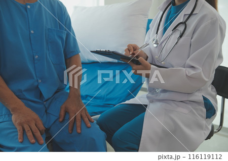 Female doctors who treat patients make an appointment to listen to the results after a physical examination and explain medical information and diagnose the disease. Medical concepts and good health