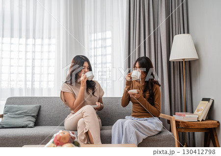 Enjoying a delightful Tea and engaging Conversation Friends Bonding at Home