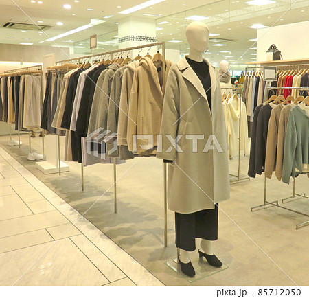 ハンガーにかけて陳列されたパーカー、シャツなど